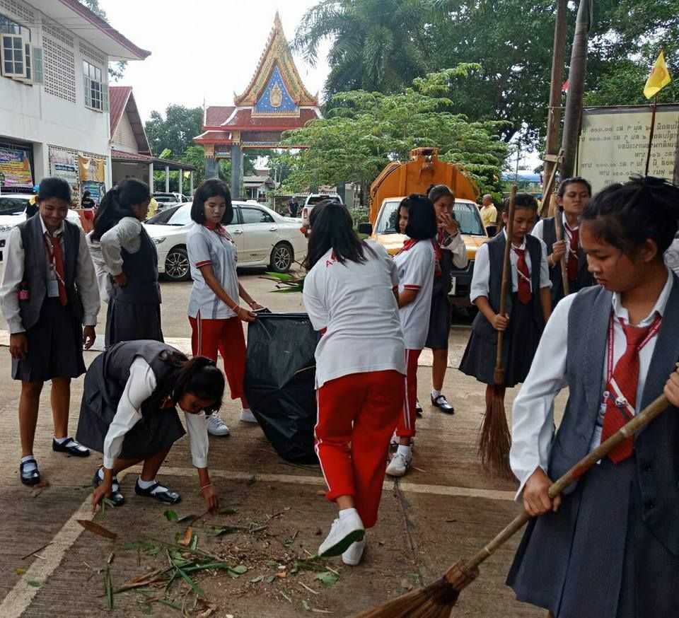 วิทยาลัยเทคโนโลยีอาเซียนบริหารธุรกิจ ร่วมกับสถานีตำรวจภูธรอำเภอแกลง นำนักเรียน นักศึกษา และเจ้าหน้าที่ตำรวจที่มีจิตอาสา ร่วมกันบำเพ็ญประโยชน์ทำความสะอาด ณ วัดโพธิ์ทองพุทธาราม อ.แกลง จ.ระยอง (11 ก.ค. 61) S:1