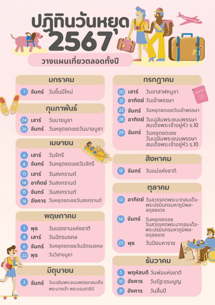ปฎิทินวันหยุดปี 2567