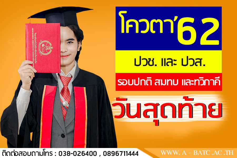 โค้งสุดท้ายกับ ?โควตา ปี 62? วันนี้วันสุดท้ายแล้วนะคะรีบจองกันได้เลยกับสิทธิพิเศษ สนใจติดต่อสอบถามได้ที่ วิทยาลัยเทคโนโลยีอาเซียนบริหารธุรกิจ โทร. 038-026400 , 089-6711444