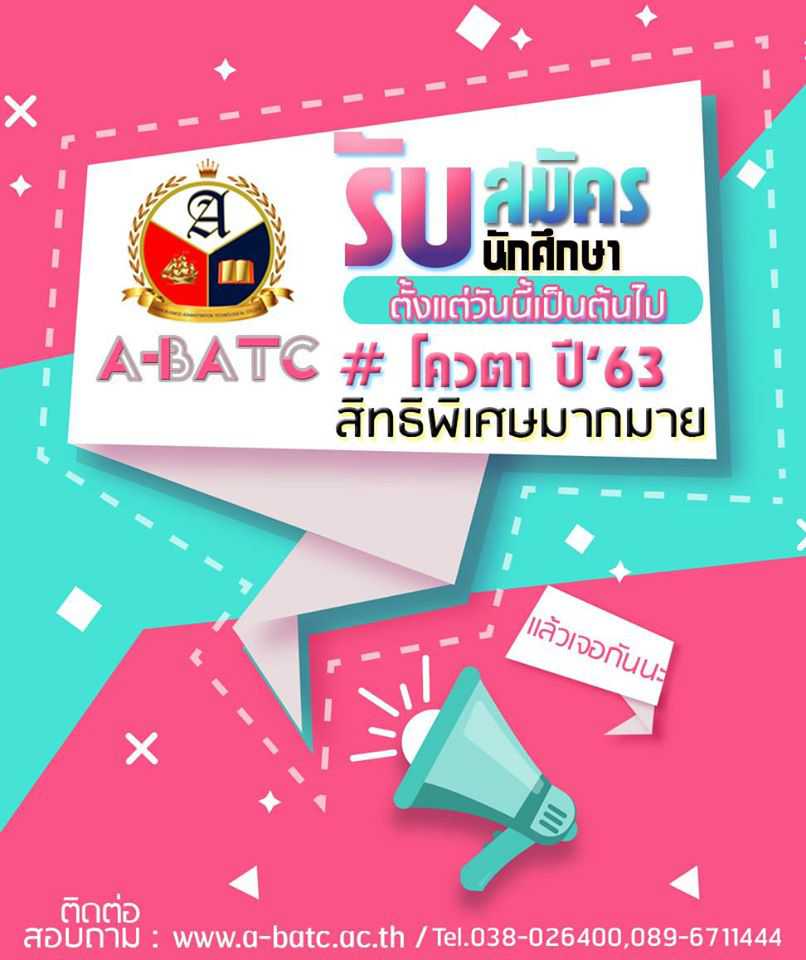 ????????ประกาศรับสมัคร โควตา ปี 63???????? #ABATC #DekABATC63 เปิดรับสมัคร นักเรียน-นักศึกษา ระดับ ปวช.-ปวส. ประจำปีการศึกษา 2563 แล้วนะครับ ???????????? รีบมาสมัครกันนะครับ ????????โควต้าเรียนฟรี63