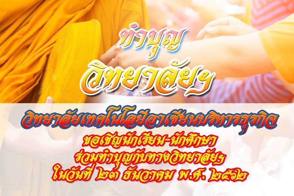 ???????? กิจกรรม " ทำบุญวิทยาลัยฯ " ???????? ในวันที่ 23 ธันวาคม 2562 ณ ลานเอนกประสงค์ วิทยาลัยเทคโนโลยีอาเซียนบริหารธุรกิจ ????????