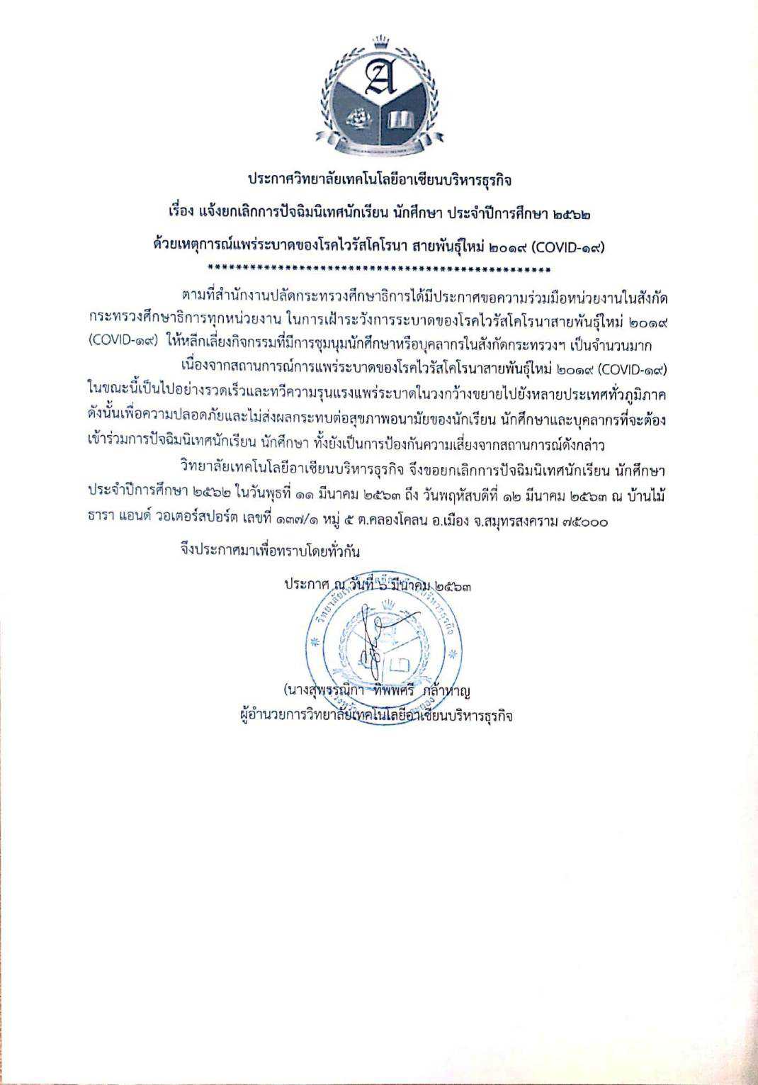 • วิทยาลัยเทคโนโลยีอาเซียนบริหารธุรกิจ