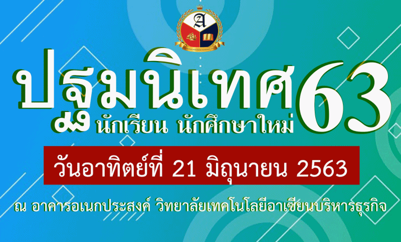 ประกาศ ประกาศ.... ปฐมนิเทศ วิทยาลัยเทคโนโลยีอาเซียนบริหารธุรกิจ