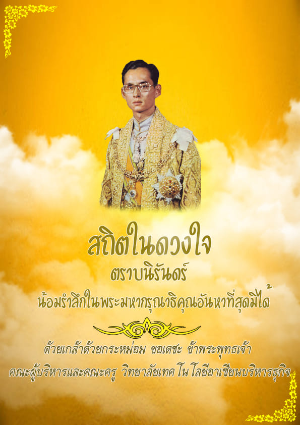 13 ตุลาคม วันคล้ายวันสวรรคต พระบาทสมเด็จพระบรมชนกาธิเบศร มหาภูมิพลอดุลยเดช มหาราชบรมนาถบพิตร น้อมรําลึกในพระมหากรุณาธิคุณเป็นล้นพ้นอันหาที่สุดมิได้ข้าพระพุทธเจ้าคณะผู้บริหาร ครู บุคลากรและนักเรียน-นั