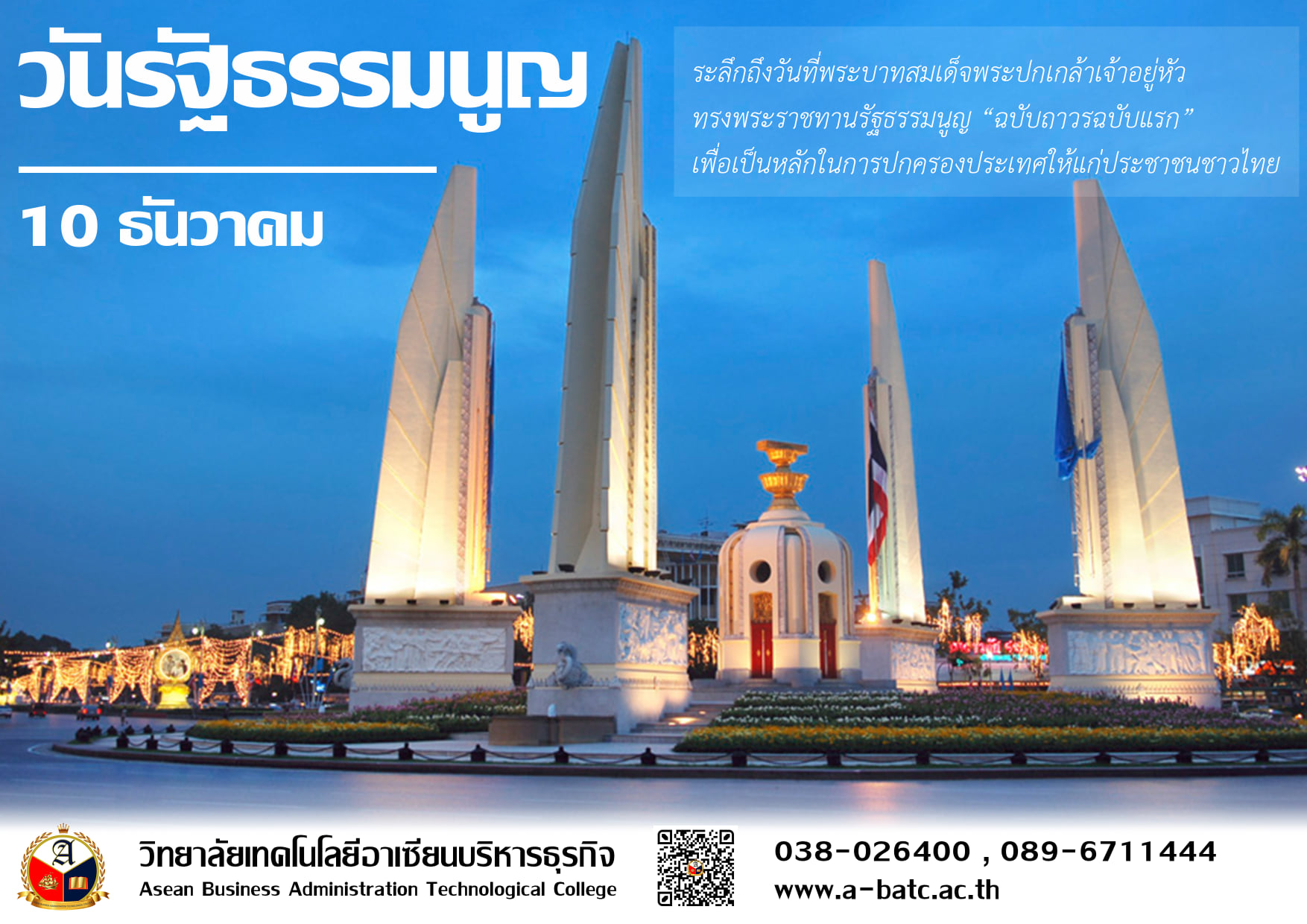 “วันรัฐธรรมนูญ” คือ วันที่จัดขึ้นเพื่อระลึกถึงการมีรัฐธรรมนูญฉบับถาวร ฉบับแรกของไทย ซึ่งพระบาทสมเด็จพระปกเกล้าเจ้าอยู่หัว (รัชกาลที่ 7) ได้พระราชทานรัฐธรรมนูญให้แก่ประชาชนชาวไทย เมื่อวันที่ 10 ธันวาคม พ.ศ. 2475 วันนี้จึงถือเป็นวันที่มีความสำคัญทางประวัติศาสตร์และการเมืองไทย