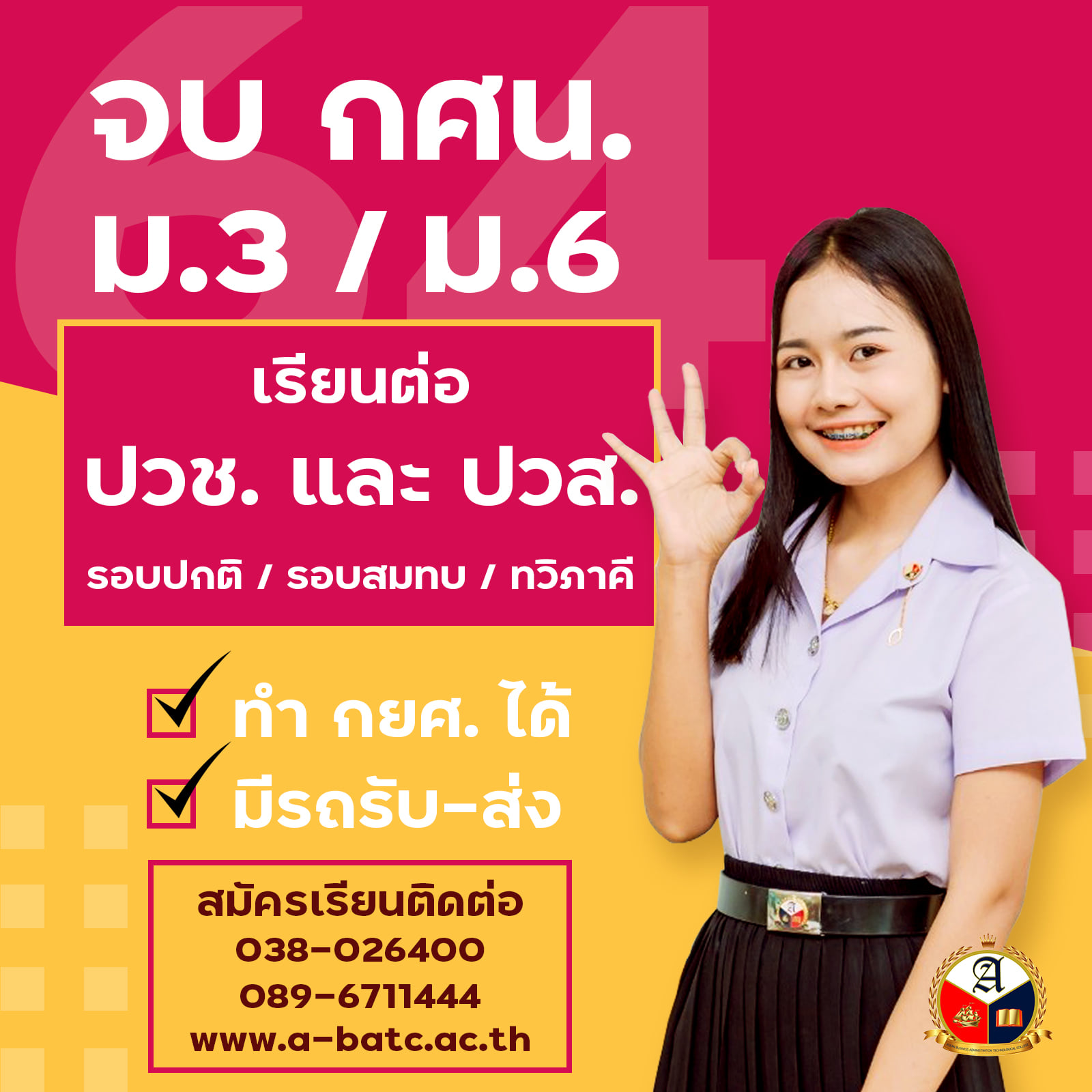 ระดับชั้น ปวช./ปวส. ผ่อนชำระค่าเทอมได้ กู้เรียน กยศ. สามารถสมัครได้ทันที (รับผู้จบการศึกษาระดับ ม.6 / กศน./หรือเทียบเท่า)