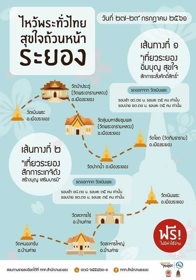 มาเที่ยวระยอง อิ่มบุญ สุขใจ ไหว้พระ เสริมบารมี ช่วงเทศกาลเข้าพรรษากับกิจกรรม "ไหว้พระทั่วไทย…สุขใจถ้วนหน้า"@ระยอง ระหว่างวันที่ ๒๗-๒๙ กรกฎาคม ๒๕๖๑