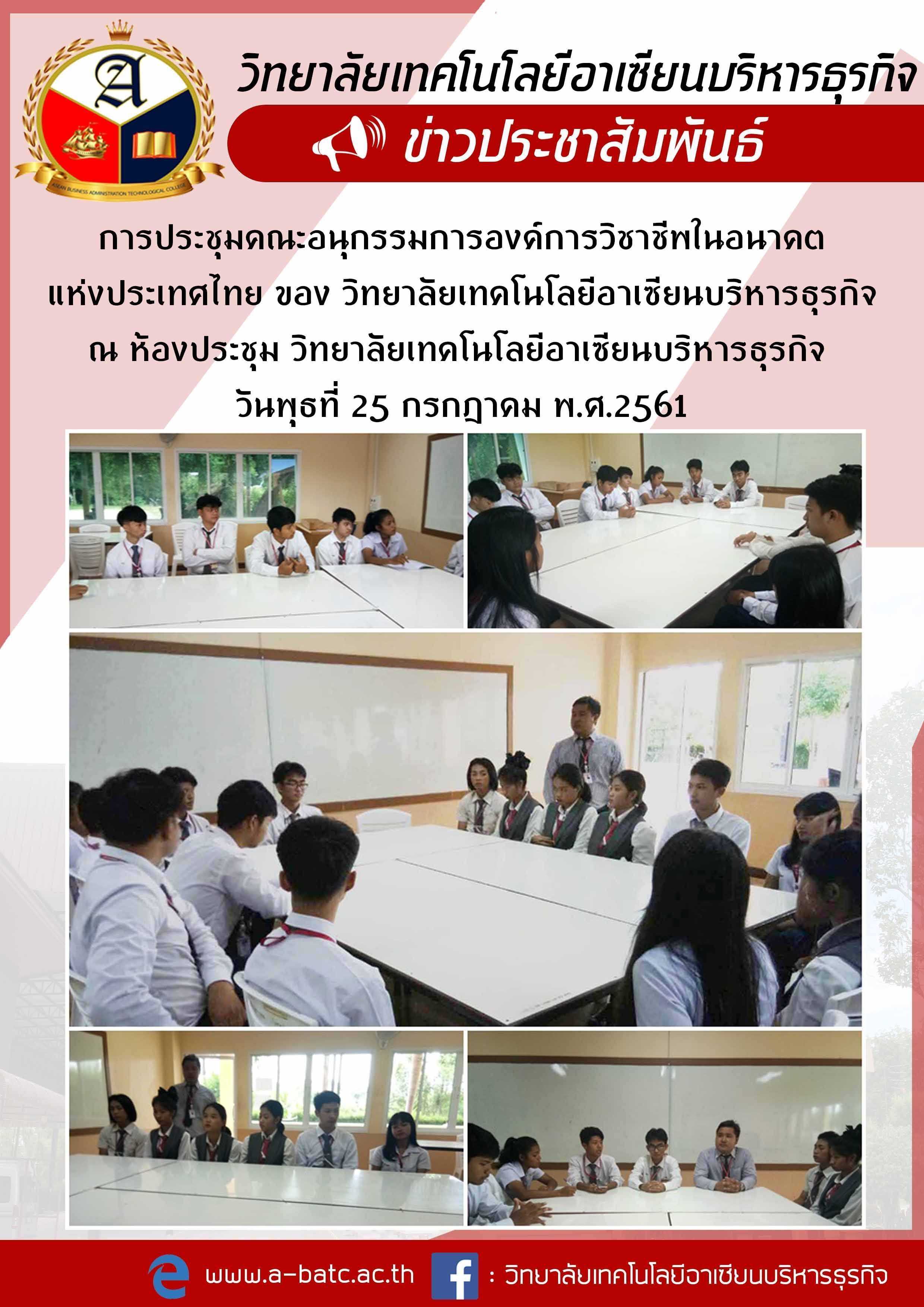 การประชุมคณะอนุกรรมการองค์การวิชาชีพในอนาคตแห่งประเทศไทย ของ วิทยาลัยเทคโนโลยีอาเซียนบริหารธุรกิจ