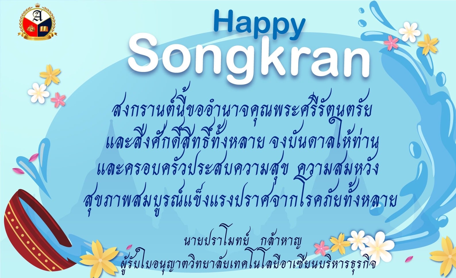 สงกรานต์นี้ขออำนาจคุณพระศรีรัตนตรัย และสิ่งศักดิ์สิทธิ์ทั้งหลาย จงบันดาลให้ท่านและครอบครัวประสบความสุข ความสมหวังสุขภาพสมบูรณ์แข็งแรงปราศจากโรคภัยทั้งหลาย