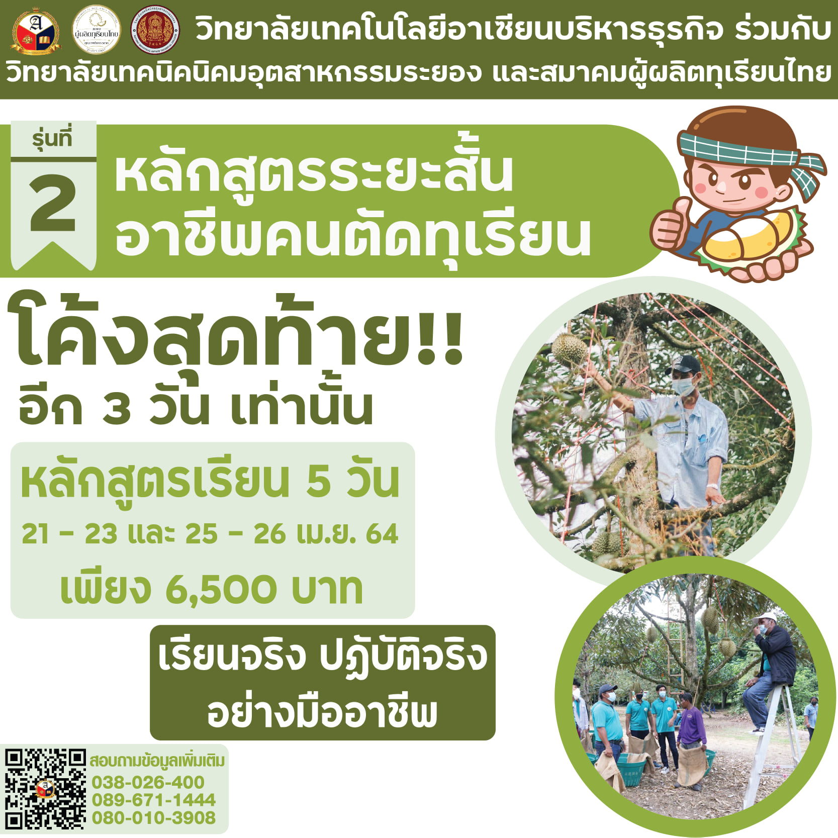 วิทยาลัยเทคโนโลยีอาเซียนบริหารธุรกิจ ร่วมกับ วิทยาลัยเทคนิคนิคมอุตสาหกรรมระยอง และสมาคมผู้ผลิตทุเรียนไทย