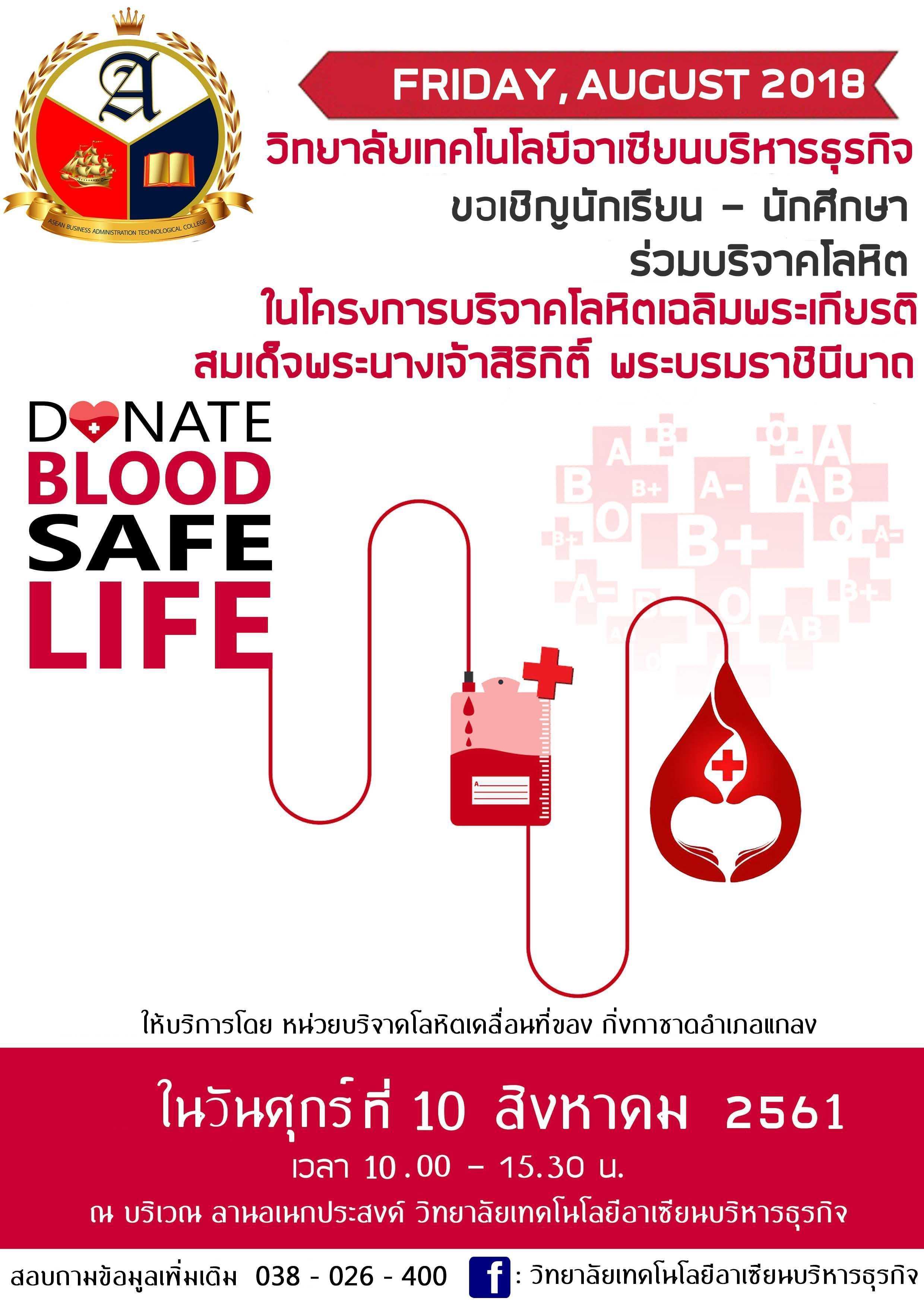 ขอเชิญนักเรียน-นักศึกษา บริจาคโลหิต ในวันที่ 10 สิงหาคม 2651