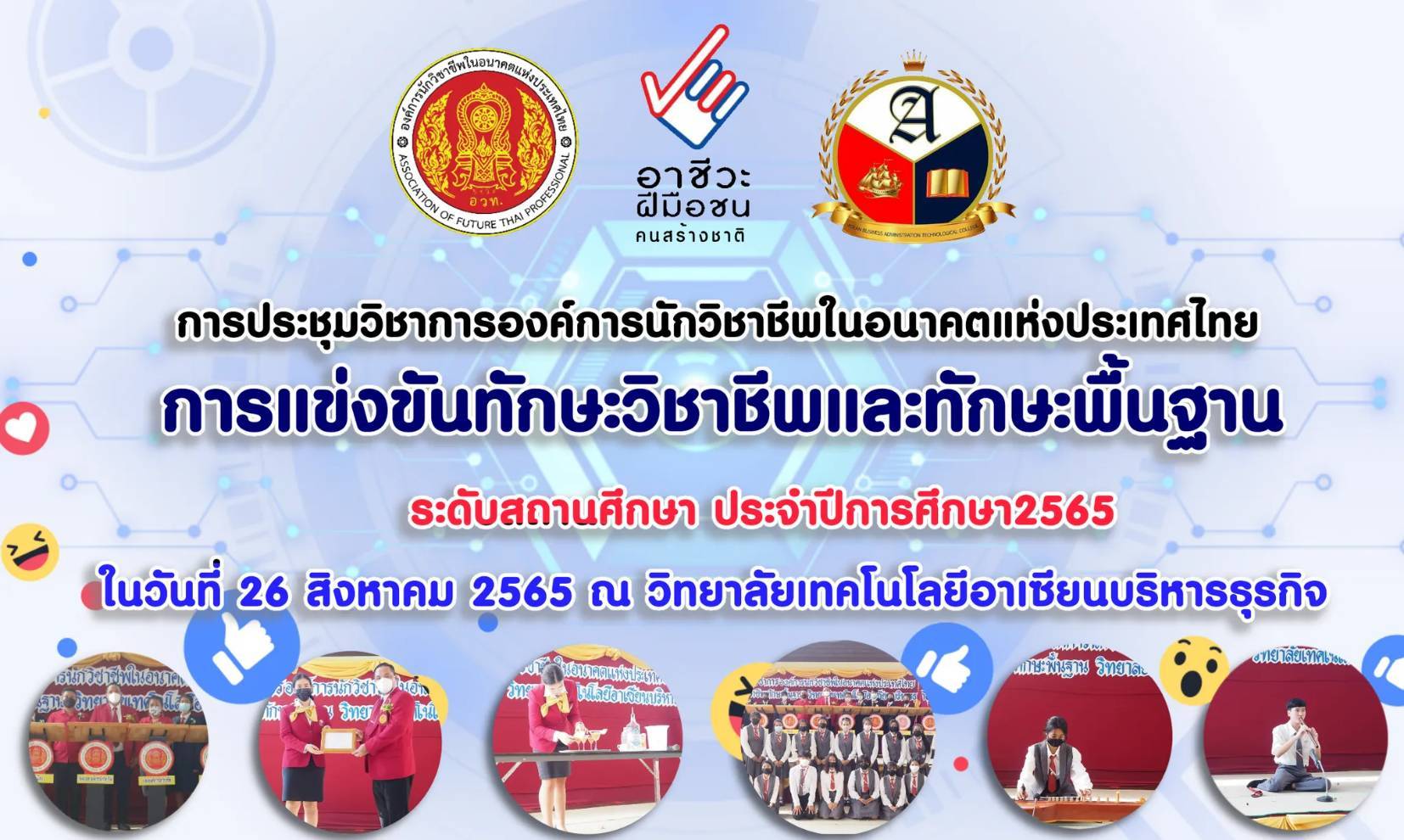 ขอเชิญนักเรียน นักศึกษา เข้าร่วมการประชุมวิชาการนักวิชาชีพในอนาคตแห่งประเทศไทย การแข่งขันทักษะวิชาชีพและทักษะพื้นฐาน ระดับสถานศึกษา ประจำปีการศึกษา 2565 ในวันที่ 26 สิงหาคม 2565