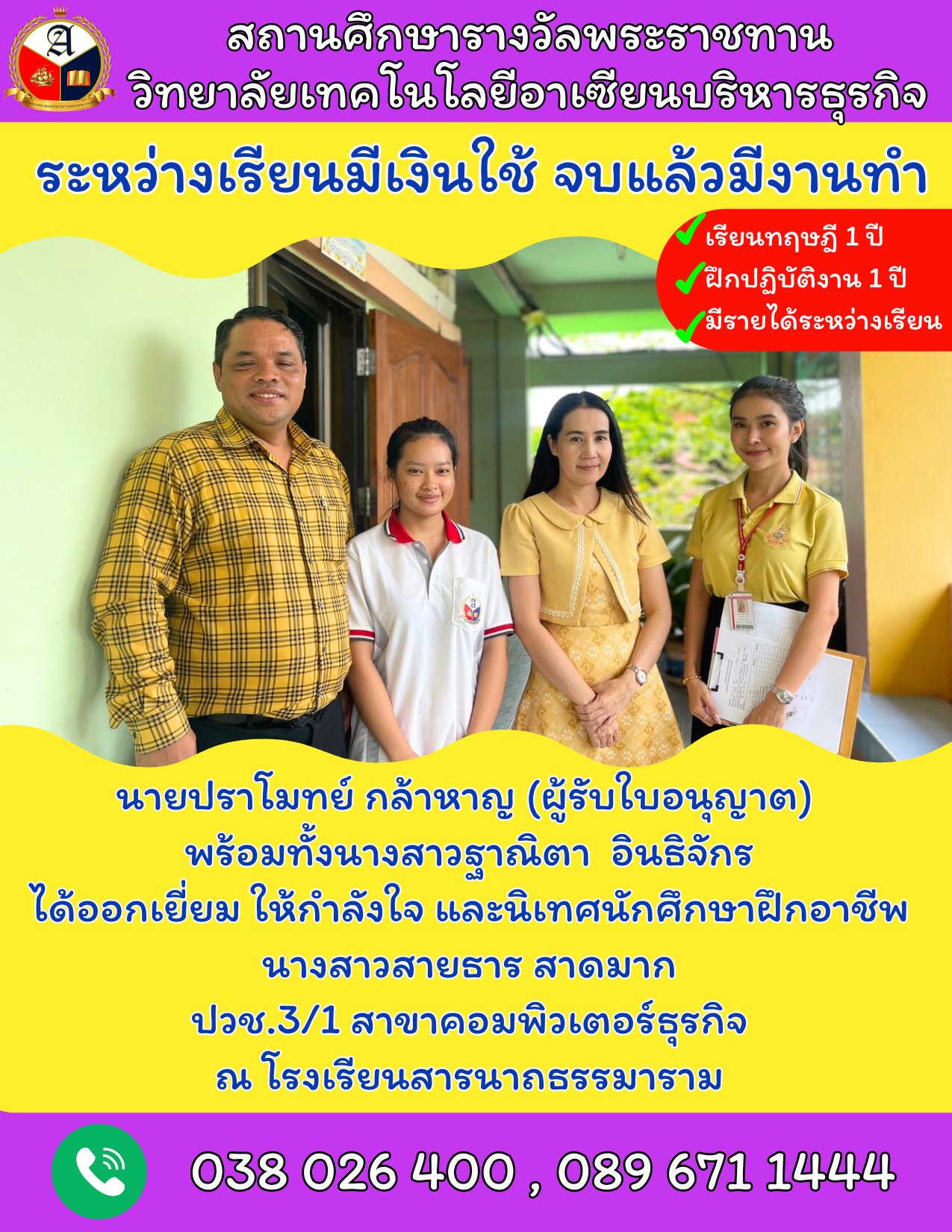 ระหว่างเรียนมีเงินใช้ จบแล้วมีงานทำ