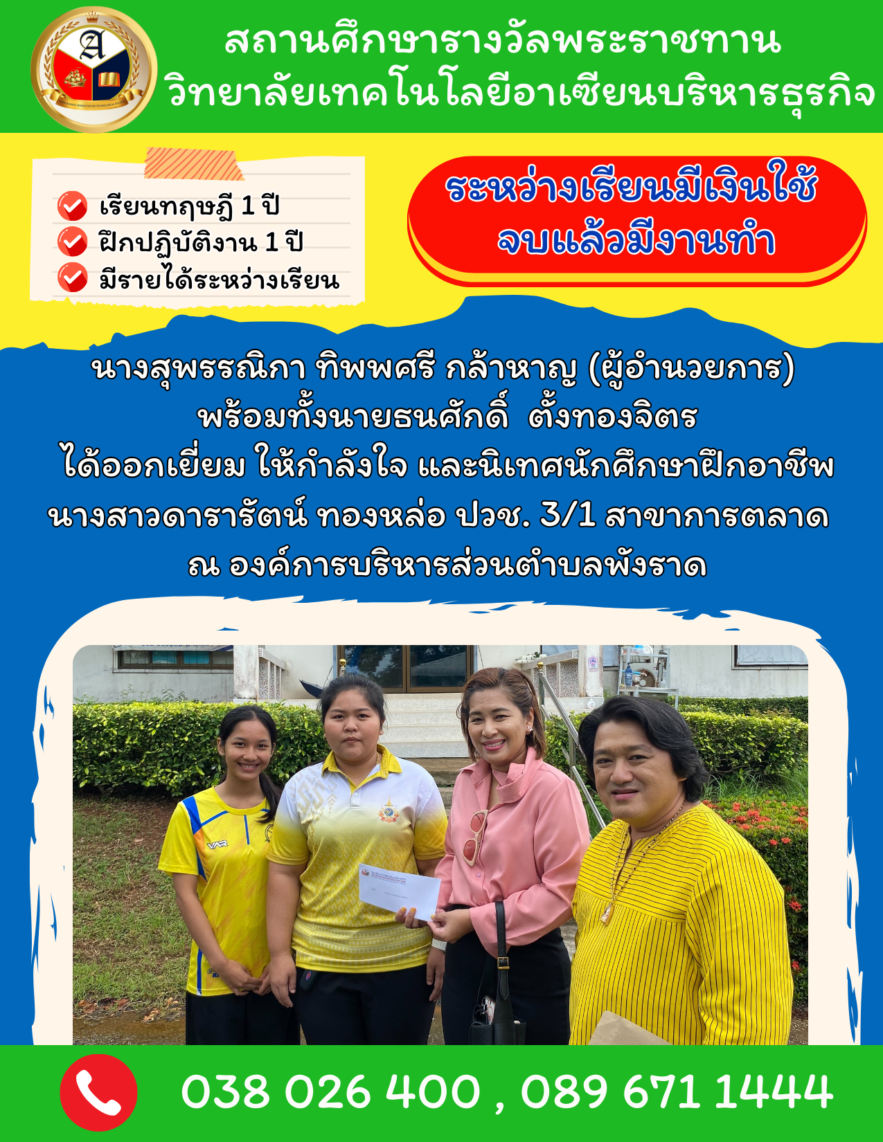 ระหว่างเรียนมีเงินใช้ จบแล้วมีงานทำ
