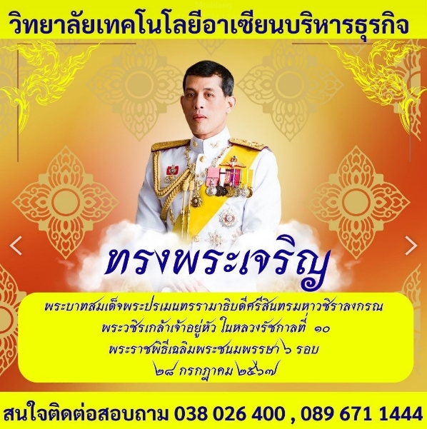 ข้าพระพุทธเจ้า คณะผู้บริหาร คณะครู และนักเรียน นักศึกษา วิทยาลัยเทคโนโลยีอาเซียนบริหารธุรกิจ อ.แกลง จ.ระยอง