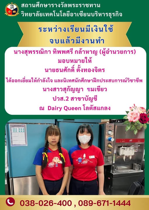 ระหว่างเรียนมีเงินใช้ จบแล้วมีงานทำ