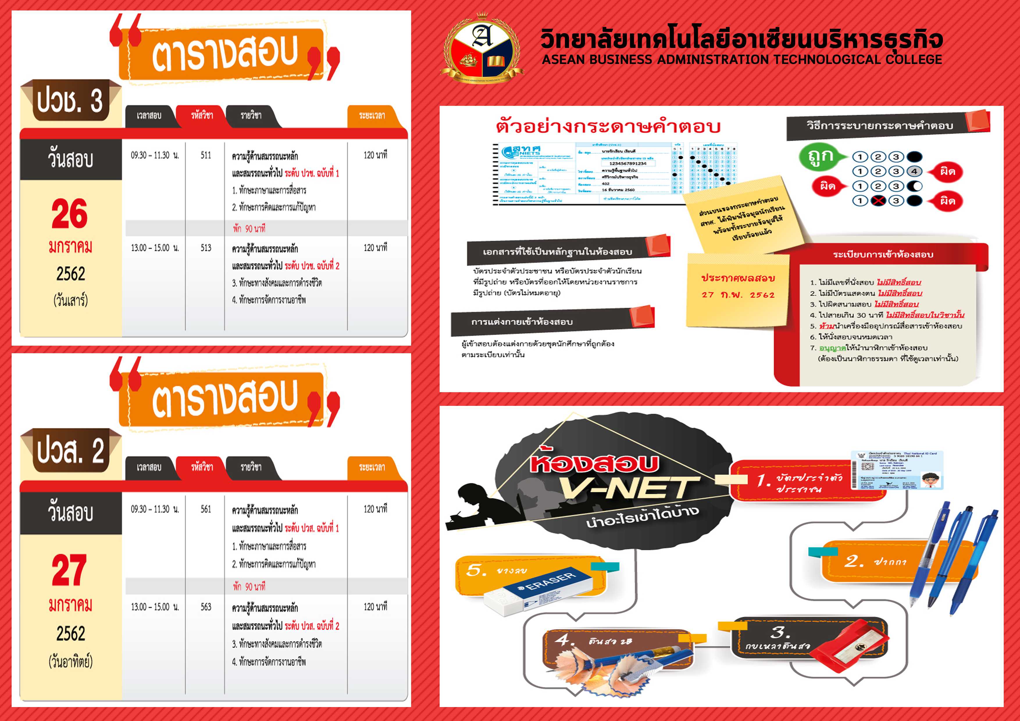 ตารางสอบ V-NET ปี 2562