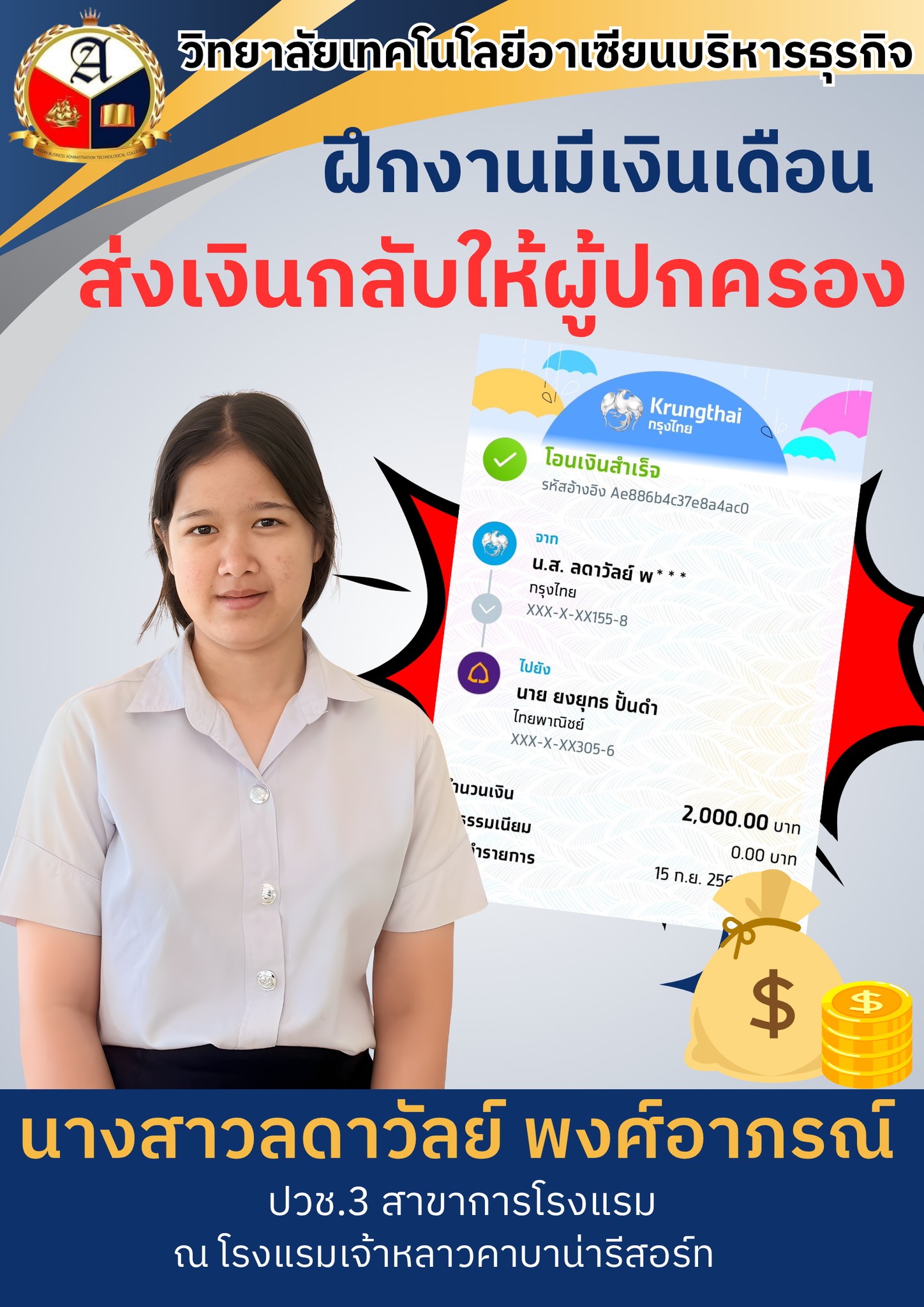 ?????????ฝึกงานมีรายได้ ส่งเงินกลับให้ผู้ปกครองทุกเดือน???????