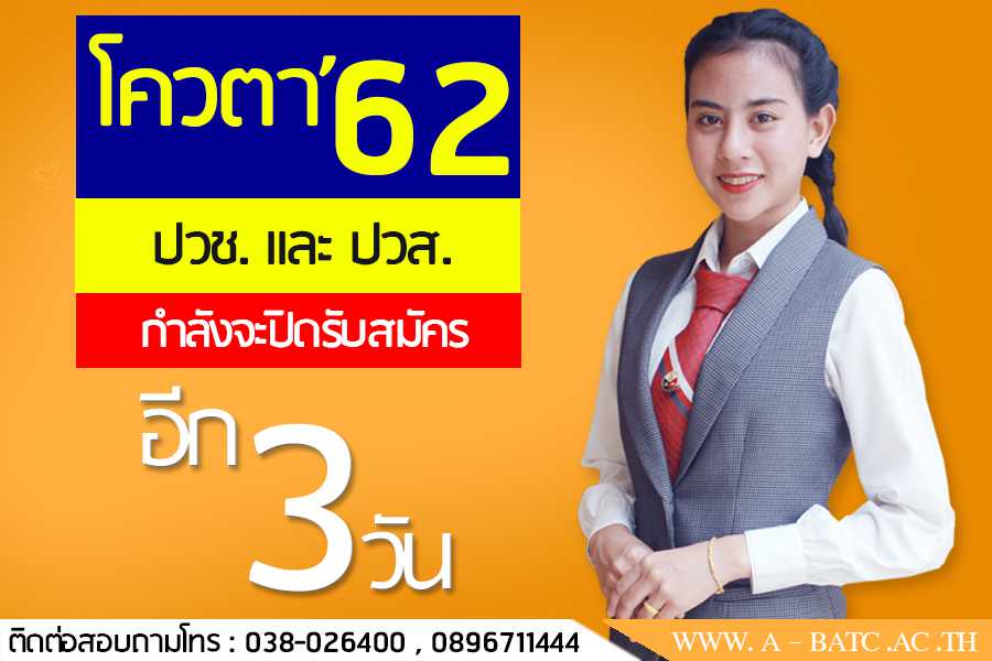 "โควตา ดีดี ปี 62" จองกันได้เลยนะค่ะ กับสิทธิพิเศษ สนใจติดต่อสอบถามได้ที่ วิทยาลัยเทคโนโลยีอาเซียนบริหารธุรกิจ โทร. 038-026400 , 089-6711444